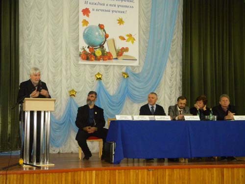 Региональная научная конференция, посвященная 100-летию со дня рождения краеведа и паремиолога Сергея Даниловича Мастепанова.9 октября 2013 года в конференц-зале Центра детского творчества состоялась региональная научная конференция, посвященная 100-летию со дня рождения краеведа и паремиолога Сергея Даниловича Мастепанова. С.Д. Мастепанов долгие года трудился в с. Петровском в маленькой сельской школе. Но этот человек был не только хорошим учителем, но и имел мировую известность как паремиолог (собирал и квалифицировал произведения устного народного творчества) В работе конференции приняли участие учителя кубановедения, библиотекари сельских библиотек и школ района. В пленарном заседании выступили Г.Л. Немченко, известный русский писатель, публицист, общественный деятель, член Союза писателей с 1964 года, лауреат премий имени Пушкина, Николая Островского, заслуженный работник культуры республики Адыгея, автор около 50 книг; В.М. Пелих, кандидат филологических наук, доцент кафедры русского языка и методики его преподавания АГПА; С.Н. Малахов, кандидат исторических наук, доцент кафедры всеобщей и отечественной истории АГПА и многие другие. | |