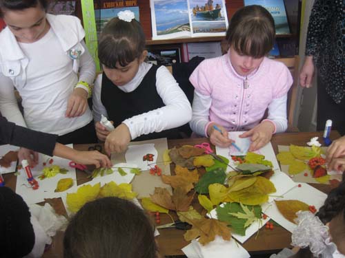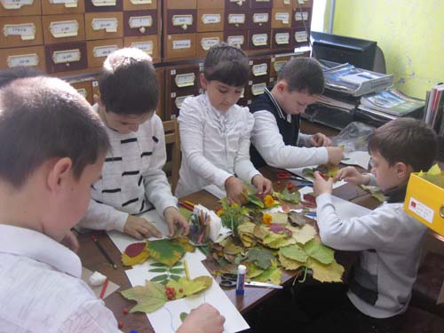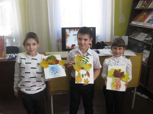 Мир замечательных поделок: мастер – класс.24.10.13г. школа №1, 3 класс, 27 человек. В Отрадненской районной детской библиотеке прошло заседание клуба «Зеленый великан». На мероприятие пришли ученики 3 класса МБОУСОШ № 1. Цель мероприятия: воспитывать у детей терпение, усидчивость и желание творить, развивать художественно-творческие способности. На заседании клуба поговорили об осени, обсудили приметы каждого месяца, вспомнили пословицы, поговорки, отгадали загадки, предложенные библиотекарем. Для того, чтобы закрепить материал, ребята вместе с библиотекарем изготовили поделки из даров осени «Осенний подарок». Большой простор для творчества дают осенние листья, рябина, калина и веточки различных растений. Поделки получились яркими и красочными, а их изготовление не заняло много времени. Ребята ушли в хорошем настроении с подарками для своих родителей. | |