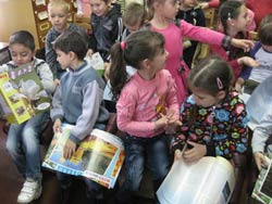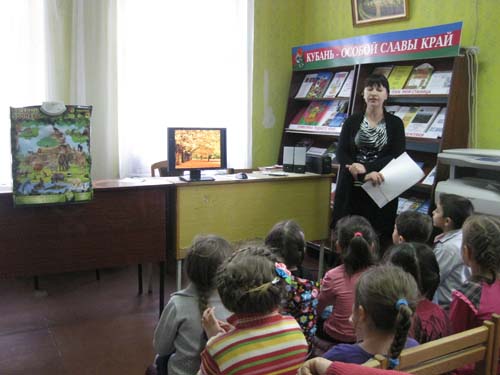 «Золотая осень» - виртуальное путешествие в осенний лес, 28.10.13 РДБ, Д/с № 2 «Ласточка», подготовительная группа, 16 человек.Цель мероприятия: закрепление знаний об изменениях в природе осенью, развитие наблюдательности, воспитание любви к природе, интереса к окружающему миру. Во время мероприятия ребятам была представлена презентация об осеннем лесе и его обитателях. Библиотекарь рассказала, какие птицы улетают на юг, какие животные впадают в спячку, а какие ведут заготовки на зиму, и как зимуют. Дети прослушали пословицы и поговорки о зимующих зверях и птицах, и отгадывали загадки, с помощью которых познакомились с тем, какие припасы делают животные. Детям библиотекари рекомендовали дома устроить «столовую» для птиц, которые не улетают на юг. В конце мероприятия ребята посмотрели мультфильм «Зимовье зверей», и познакомились с журналами о животных, чему были очень рады. | |