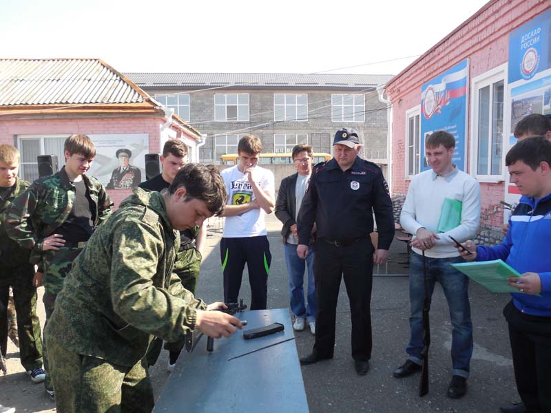 Дата публикации: 28 марта 2014 ![]() ![]() В станице Отрадной на базе ДОСААФ России в рамках акции «Солдатами не рождаются, солдатами становятся» состоялся военно- спортивный праздник. Конкурс проходил среди учащихся образовательных школ Отрадненского района, а также подростков, состоящих на профилактическом учете в отделении по делам несовершеннолетних. В соревнованиях принимало участие 7 команд. В торжественной церемонии открытия конкурса приняли участие: заместитель председателя советов ветеранов, член Общественного совета, участник боевых действий в Афганистане Г.П. Кисель, представители комитета по делам молодежи, военного комиссариата, представители сельских поселений Отрадненского района, начальник отделения по делам несовершеннолетних, преподаватели ДОСААФ РОССИИ. В начале мероприятия авиамодельный клуб «Свободное небо», созданный ДОССАФ РОССИИ показал ребятам показательное выступление. Ребята соревновались в конкурсе песни и строя, показывали навыки разборки, сборки автомата, подтягивались на перекладине, состязались в стрельбе из пневматической винтовки, участвовали в комплексной военизированной эстафете, в метании гранат на точность и дальность, соревновались в челночном беге. По итогам конкурса первое место заняла команда МБОУ СОШ №1, второе место команда ДОСААФ России и третье место команда МБОУ СОШ №16.Победителей наградили грамотами и призами. Представитель Общественного совета Г.П. Кисель, отметил, что мероприятия, направлены на патриотическое воспитание молодежи и пропаганду здорового образа жизни. Проведенные соревнования, показали насколько будущие защитники Отечества, готовы к несению службы и знакомы с устройством и использованием боевого оружия. Т.Н. Чибирикова, специалист направления по связям со СМИ, майор внутренней службы | ||||||||||||||||||||||||||||||||||||||||||||||||||||||||||||||||||||||||||