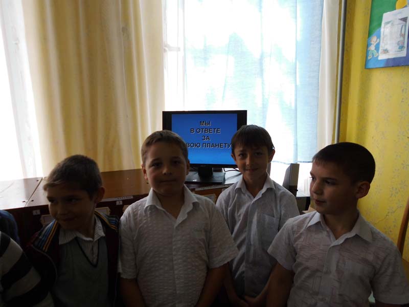 | (экологический час). 17.04.2014., РДБ, МБОУСОШ №1, 3 «Б» класс, 27 человек. Заседание клуба, проведенное библиотекарем РДБ, посвящено Всемирному Дню Земли. Ребята узнали, что 22 апреля 1969 года из скважины в американском городе Санта – Барбара разлилось миллионы тонн нефти. Пляжи, вода покрылись толстым слоем жирной слизи. Погибло много животных, птиц. Это событие разбудило сознание людей, и они решили этот день посвятить защите нашей планеты, который отмечается ежегодно. | |