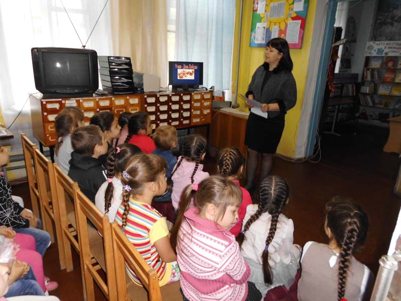 | Час памяти. 6.05.14, 10-00, РДБ, МБДОУ № 2, 18 чел. Библиотекарь рассказала детям о том, как и когда началась Великая Отечественная война. Ребята узнали почему эта война называлась Великой и Отечественной, как готовились и проходили битвы, о подвиге солдат и командиров, об оружии, которое принесло нам победу. Всего присутствовало 18 человек. | |