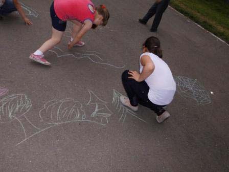 | (игровая программа). (17.05.2014, школа №1, 2-е классы, 21 человек). На летней площадке кинотеатра «Заря» состоялось игровое мероприятие, посвященное Всероссийской ночи музеев. Дети играли в русские народные игры. Они узнали о том, когда возникли игры, кто их придумал. Во время мероприятия участники много двигались, показали свою находчивость, смекалку, ловкость и упорство. В заключение дети нарисовали на асфальте своего любимого персонажа из русских сказок. | |