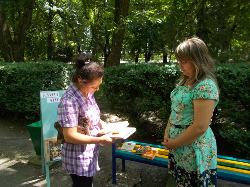| Читальный зал под открытым небом. МБУК «ОМЦБ», центральный парк. 30 июля 2014 года работниками районной библиотеки был организован «читальный зал» под открытым небом на тему: «Книга ищет читателя». Цель мероприятия: популяризация чтения. Мероприятие прошло в центральном парке на главной аллее. Библиотекари предложили подборку книг для букросинга. Все желающие внимательно слушали информацию о том, что это такое и с удовольствием выбирали книги для себя, для своих знакомых и друзей. Книги, которые никто не выбрал, были оставлены в парке на скамье для других любителей чтения. В мероприятии приняли участие 24 человека. | |