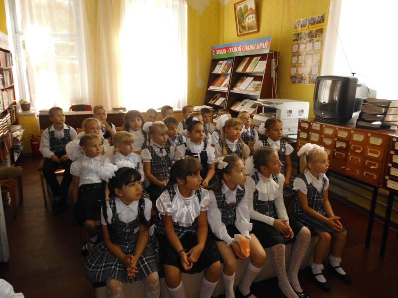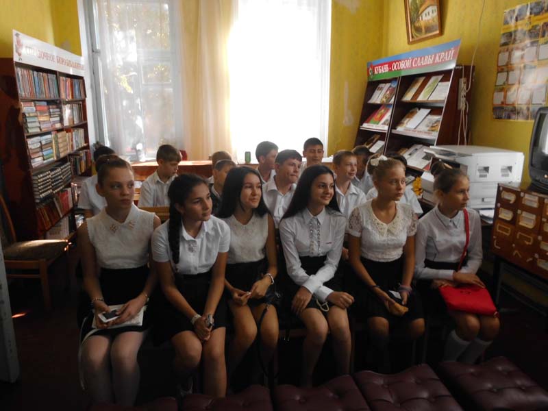 | В. Г. Захарченко – художественный руководитель Государственного академического Кубанского хора. (Час патриотического воспитания). 1.09.2014г., РДБ, МБОУСОШ №1, 2 и 7 классы, 45 человек. В начале мероприятия поговорили с ребятами о том, что 2014год – Год культуры, дали определение слову культура, узнали, какими качествами должен обладать культурный человек. Затем, ребята познакомились с историей возникновения Кубанского казачьего хора, с деятельностью художественного руководителя В. Г. Захарченко и его творчеством. Прослушали и просмотрели выступление Кубанского казачьего хора, отгадывали казацкие бойцовские загадки, расширили знания учащихся о народных инструментах. | |
