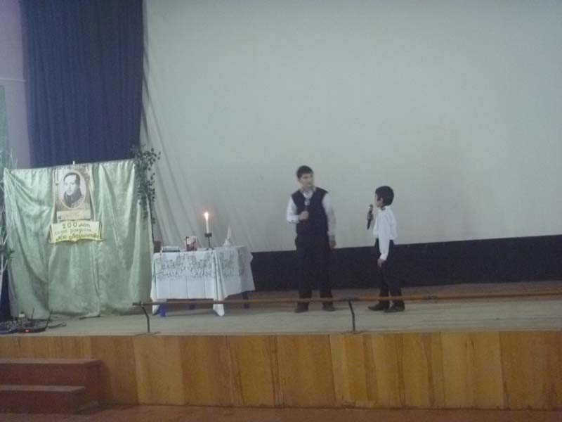 | (конкурс чтецов). 15.10.2014г. 4-е классы МБОУ СОШ №1, 84 чел. 15 октября 2014 г. районная детская библиотека провела конкурс чтецов «Лермонтовское наследие», посвященный 200 – летию со дня рождения М. Ю. Лермонтова. Конкурс проходил в кинотеатре «Заря». Участниками конкурса были учащиеся 4 - х классов МБОУ СОШ №1 имени Колесника (16 человек). Во время конкурса прозвучали следующие стихи: «Осень», «Парус», «Кавказу», «Бородино», «Тучи», «Утес», «Люблю Отчизну я», «Казачья колыбельная». Также демонстрировалась презентация о жизни М. Ю. Лермонтова, слайды с фотографиями четвероклассников, где они посещали лермонтовские места, прозвучали стихи М.Ю.Лермонтова «Выхожу один я на дорогу», «Казачья колыбельная», положенные на музыку. Победителями конкурса стали: 1. Агаларова Ангелина – 4а; 2. Часнык Михаил – 4 в; 3. Смеликова Мария 4а. Победители конкурса получили грамоты и подарки, а все остальные участники - благодарственные письма. | |