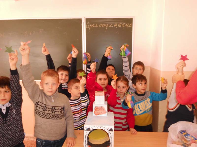 | (игровая программа). 05.11.14., МБОУСОШ №16, 1-А класс, 12 человек. Во время мероприятия в РДБ ребята путешествовали по сказке, им предстояло преодолевать на своем пути трудности. Библиотекарь давала им задание, справляясь с ним, ребята зарабатывали звездочки. Задания были в несколько этапов: загадки, волшебные мешочки, золотая рыбка, сказочные телеграммы, сказочные герои (раскраска). В конце мероприятия, все ребята подняли вверх руки и зажгли своими звездами небо. | |