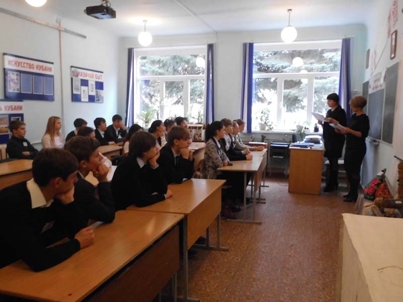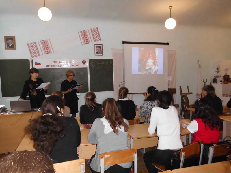 | (Литературная композиция). 24.11.14., РДБ, МБОУСОШ №1. Работники районной детской библиотеки провели литературную композицию «Мы будем вечно прославлять ту женщину, чье имя — Мать», посвященную Дню матери. Во время мероприятия учащиеся девятого класса познакомились с литературными произведениями, воспевающими образ женщины – матери, просмотрели репродукции выдающихся художников разных стран, картины которых были посвящены самому святому на земле – Женщине - Матери. Также рассказали о жизни солдатских матерей Кубани, которые в годы Великой Отечественной войны потеряли своих сыновей. Во время мероприятия прозвучали песни «Аве Мария», «Мамины глаза». На мероприятии присутствовали 25 человек. | |