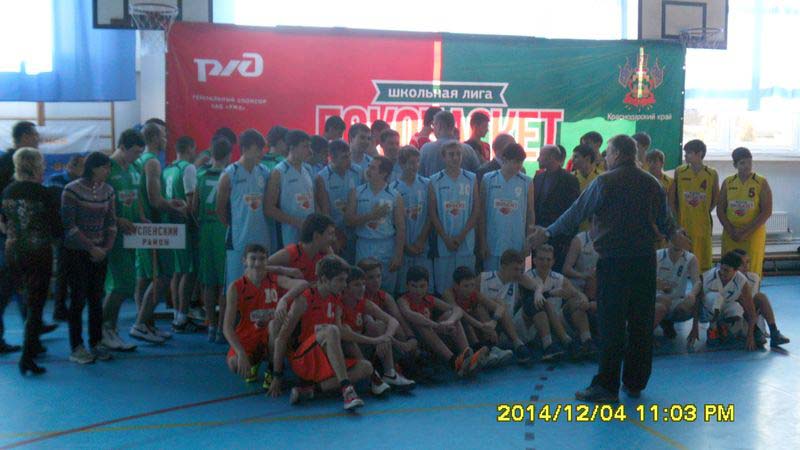 | 5 декабря 2014 г. в городе Лабинске проводились краевые соревнования по баскетболу «Локобаскет – Школьная лига» среди команд юношей 9-11 классов общеобразовательных учреждений Краснодарского края. Честь нашего района в соревнованиях защищала команда баскетболистов средней школы №9 ст. Отрадной (учитель физкультуры А.А.Постников). Результаты выступления команды учитывались в комплексном зачёте VIII Всекубанской спартакиады учащихся школ «Спортивные надежды Кубани». Пожелаем ребятам успехов в спортивных соревнованиях! | |