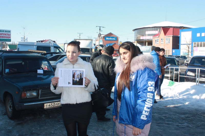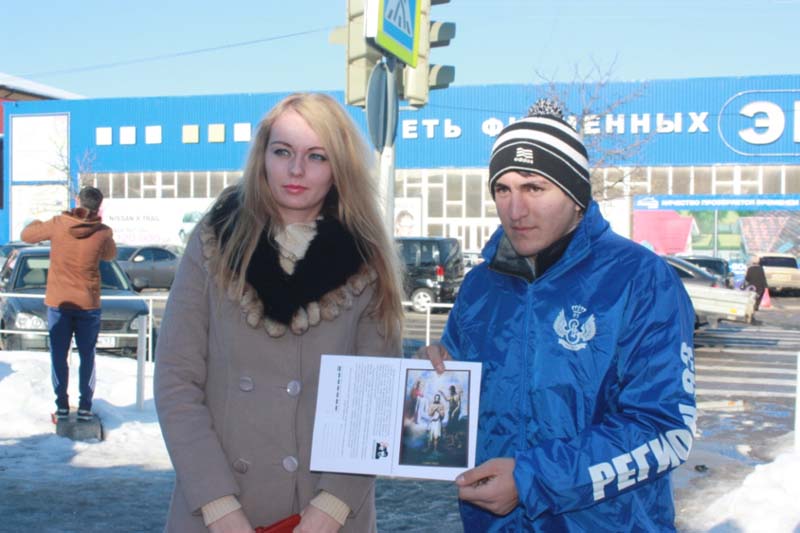 | 18 января 2015 года, в муниципальном образовании Отрадненский район состоялась Акция «Крещение Господне». В рамках проведения Акции на территории храмов, центрального парка и центрального рынка станицы Отрадной, а также в прочих местах массового скопления людей муниципального образования Отрадненский район была организованна работа волонтеров и активистов молодежного движения «Регион 93» по распространению среди жителей и гостей района поздравительных открыток. Охват мероприятия составил 403 человека. | |