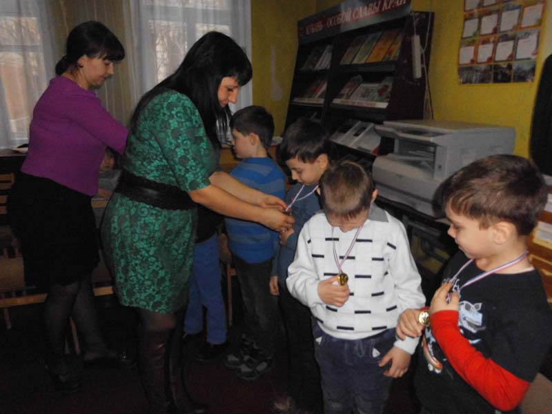 | 16.02.15., РДБ, МБДОУ № 5, 12 человек. Мероприятие, посвященное Дню Защитника Отечества, прошло в РДБ. Оно состояло из трех этапов. На первом этапе мероприятия было кратко рассказано об истории праздника Дня Защитника Отечества, показаны тематические слайды. На втором этапе прошли игры и конкурсы. Ребята с удовольствием участвовали в конкурсах, такие как: «какие бывают военные», «поход», «военная техника и оружие», «знатоки», «сказка из солдатского вещмешка», «солдатская каша», «доскажи пословицу». На последнем третьем этапе девочки совместно с библиотекарем поздравили мальчиков — будущих защитников Отечества с праздником и наградили участников конкурсов медалями. | |