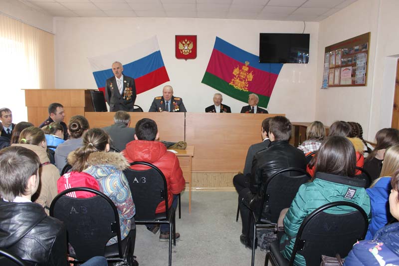 | В рамках проводимой «Недели мужества» в районе полицейские и Общественный совет провели «Урок мужества». В рамках акции «Уроки мужества» сотрудники полиции ОМВД совместно с Общественным советом при ОМВД провели «Урок мужества». Учащиеся МБОУСОШ № 1имени Колесника А.С. посетили комнату истории отдела полиции, где познакомились с историей создания и становления отдела внутренних дел. В мероприятии приняли участие ветераны Великой Отечественной войны: Н.Н. Галигоров, В.В. Ольчиков,Общественный совет при ОМВД, ветеран МВД, Г.В. Иванов председатель ветеранской организации Отрадненского района,заместитель председателя ассоциации воинов Афганистана Отрадненского района- участник войны в АфганистанеГ.П. Кисель, ветеран боевых действий в Афганистане- В.Н. Стещенко,начальник ОРЛС ОМВД майор внутренней службы Д.В. Панасенко, учащиеся школ. Ветеран Великой Отечественной войны Василий Васильевич Ольчиков участник парада Победы в Москве, рассказал, о том, что 16-летним парнем пошел на фронт, защищать Родину от немецких захватчиков. Служил во 2-й гвардейской Таманской дивизии, воевал под Кенисбергом. Ветеран войны рассказал ребятам о мужестве, героизме советских солдат. А ветеран войны Николай Николаевич Галигоров рассказал ученикам о том пути, который ему пришлось пройти в годы Великой Отечественной войны, о том, что именно любовь к Родине, патриотизм помогли советскому народу победить в той страшной войне. Ветеран боевых действий, участник войны в Афганистане Валентин Николаевич Стещенко рассказал ребятам, о том, что 15 февраля россияне отмечали 26- ю годовщину вывода советских войск из Афганистана. Валентин Николаевич рассказал о героических поступках советских солдат, которые не щадя своих жизней защищали афганский народ. Начальник ОРЛС майор внутренней службы Д.В. Панасенко рассказал ребятам о специфике особенностях службы в полиции, о героических поступках сотрудников полиции, рассказал ребятам об оружии, наглядно показал пистолет Макарова, автомат Калашникова. Ребята сами разбирали и собирали автомат. Ребята с интересом слушали рассказ о войне в Афганистане, о Великой Отечественной войне. Ветеран МВД Г.В. Иванов, который более 25 лет прослужил в милиции, рассказал о сотрудниках органов внутренних дел, о буднях участковых уполномоченных полиции, уголовного розыска, школьники поблагодарили гостей за рассказы и подарили цветы, поздравили с Днем защитника Отечества, сфотографировались на память. Во второй части мероприятия кинологи показали школьникам показательное выступление с использованием служебно-розыскных собак, а именно учебное задержание преступника и действия по обнаружению взрывчатых веществ. Ребята посетили питомник, где содержатся служебные собаки. Ребята и учителя поблагодари полицейских за интересную встречу. Заместитель председателя Общественного совета Г.В. Иванов, отметил, что проводимые мероприятия необходимы для подрастающего поколения с целью формирования высокого патриотического сознания, чувства верности своему Отечеству, готовности к выполнению гражданского долга, вспомнить исторические факты Великой Отечественной войны, что благодаря героизму и мужеству советских солдат мы победили в войне, ребятам напомнили об афганских событий, о том, что многие из которых не вернулись с той войны, г