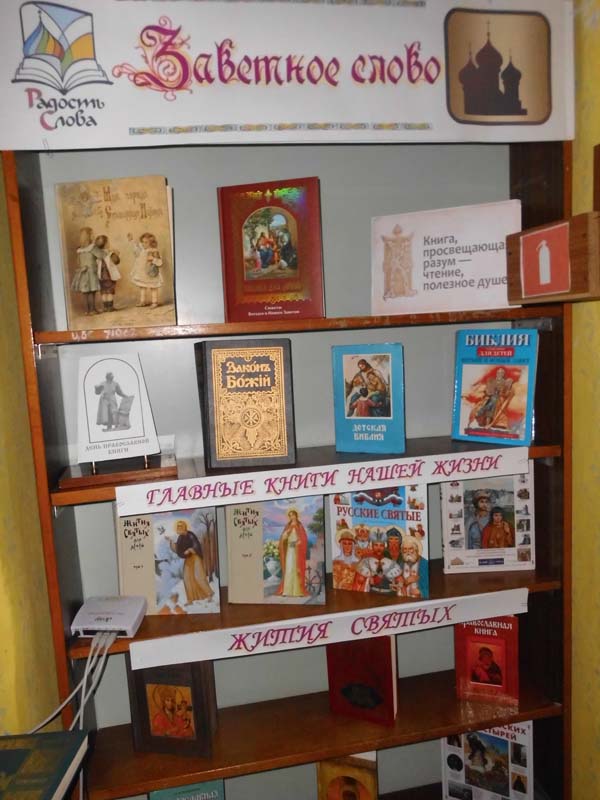 Во время беседы у книжной выставки, экспонирующейся в районной детской библиотеке, на которой представлена литература духовно-нравственной тематики, книги по истории книгопечатания и славянской письменности на Руси, о русских святых, христианской вере, ребята познакомились с православной литературой, которая имеется в нашей библиотеке. | |
