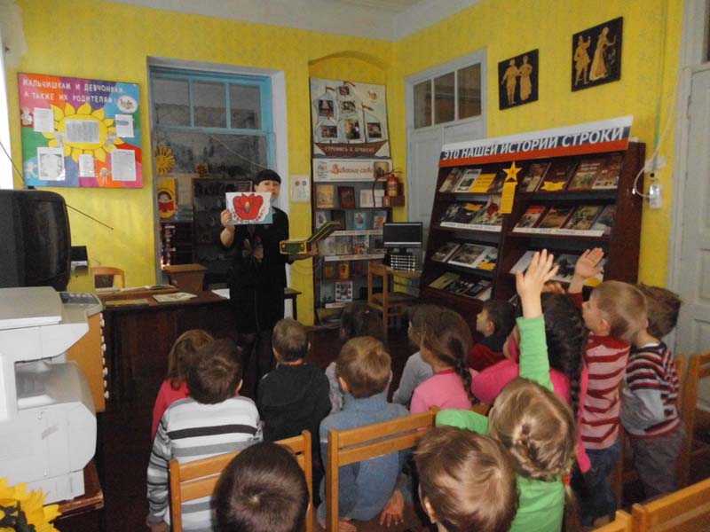 | (литературный час). 24.03.2015 г., МБДОУ № 8, 19 человек. Для гостей районной детской библиотеки, в рамках Недели детской и юношеской книги, было организовано увлекательное путешествие в волшебный мир сказок. В ходе мероприятия ребята приняли участие в сказочной викторине «Волшебный ларец», «Цветик – семицветик», прослушали стихи про сказочных героев, посмотрели слайд шоу. По окончании мероприятия, ребята познакомились с периодическими изданиями РДБ для своего возраста. Понравившиеся издания взяли для прочтения дома. | |
