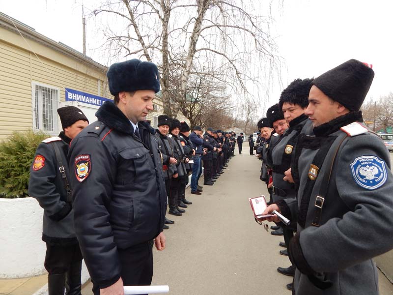 | 28 марта 2015 года в Отделе МВД России по Отрадненскому району проведен совместный развод сотрудников полиции и представителей общественности по обеспечению охраны общественного порядка на территории района. В разводе приняли участие представители казачества, ДНД, члены Общественного совета при ОМВД, МЧС, студенческая дружина, созданная на территории района. Ответственный от руководства Отдела МВД России по Отрадненскому району заместитель начальника полиции капитан полиции Топалян В.Ж. довел до личного состава, представителей общественности оперативную обстановку в районе. Поставлены задачи по обеспечению охраны общественного порядка на территории рынка станицы Отрадной, также на предупреждение, пресечение, выявление и раскрытие преступлений, административных правонарушений на улицах и в общественных местах. В.Ю. Перцух, заместитель начальника полиции по ООП ОМВД России по Отрадненскому району, майор полиции | |