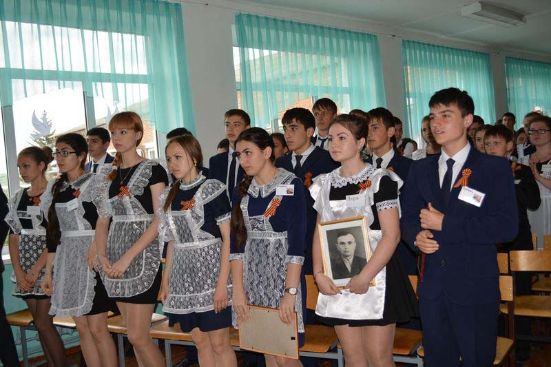 | На Уроке мужества в бесстрашненской школе №28 побывали учащиеся школ №№ 1, 9 ,17, 28,59. Его для ребят провел председатель ЗСК В.А.Бекетов.Владимир Андреевич рассказал ребятам о вкладе кубанцев в Великую Победу, ознакомил с материалами газеты «Правда» за 10 мая 1945 года, обращением И.В. Сталина к советскому народу. На уроке присутствовали глава района А.В. Волненко, председатель райсовета В.Г. Ширекин, ветераны И.Я. Ковбаса и Т.Ф. Овсеенко. Урокначался с передвижной выставки материалов, собранных учащимися в поисковой деятельности о земляках, сражавшихся на фронтах Великой Отечественной войны. Ребята с гордостью сообщили о своих прадедах, их подвигах и наградах. Урок завершился исполнением «Венского вальса» учениками первой и девятой школ. | |