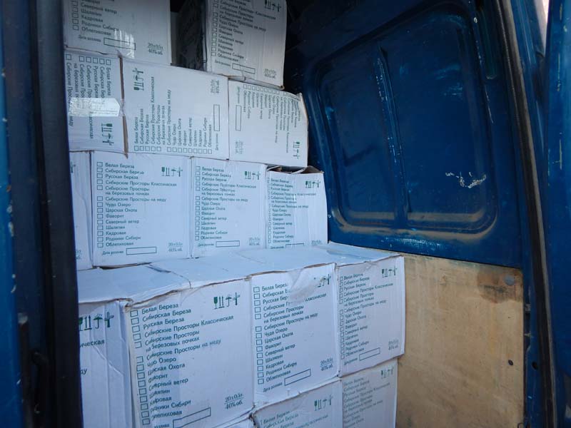 В селе Гусаровском при надзоре за дорожным движением сотрудниками ДПС ОГИБДД ОМВД России по Отрадненскому району были остановлены два автомобиля «ГАЗ-2705» под управлением жителей Кабардино-Балкарской Республики. При осмотре полицейские обнаружили в грузовом отсеке автомобилей более 3400 бутылок водки известных торговых марок, а также 600 бутылей емкостью по 5 литров спиртосодержащей продукции. Всего полицейские изъяли 4500 литров алкогольной продукции без сопроводительных документов. Задержанные автомобили доставлены в Отдел МВД России по Отрадненскому району. Алкогольная продукция изъята и направлена на исследование. По данному факту проводится проверка. В.Б. Володченко, начальник ОМВД России по Отрадненскому району, подполковник полиции | |