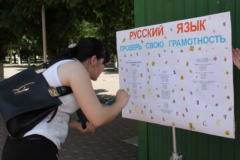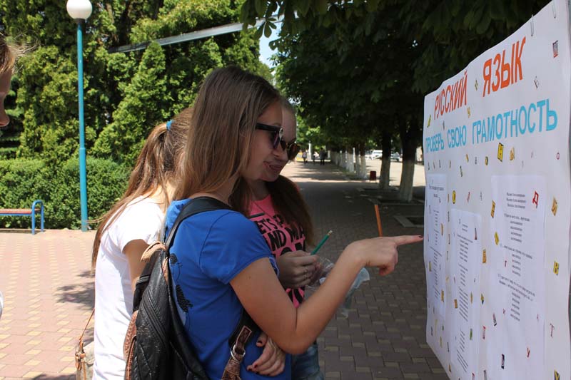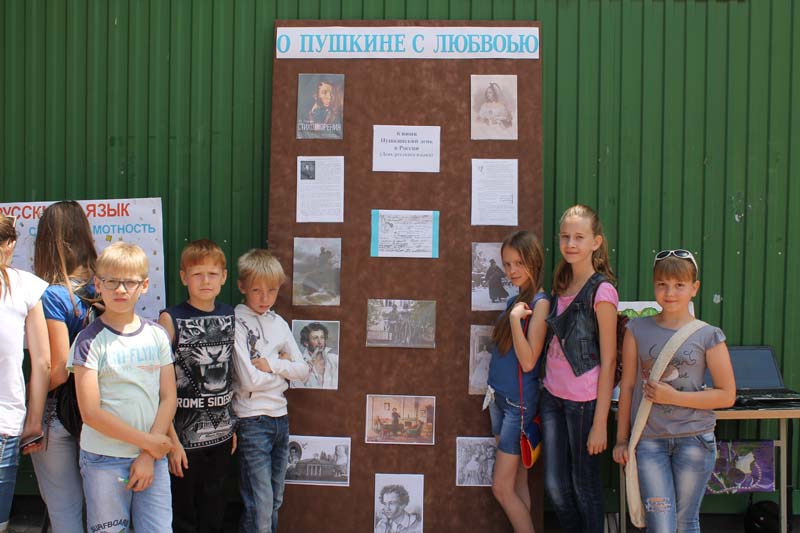 | Флэш-моб, информационная акция, Отрадненская районная библиотека. 5 июня в преддверии Пушкинского дня в России и дня русского языка на центральной площади станицы Отрадной прошли информационно-познавательные мероприятия - викторины, беседы у информационного стенда, кроссворды, книжные развалы. Цель: Пропаганда творчества А.С.Пушкина, русского языка и деятельности библиотеки. В ходе мероприятия дети и юношество, а также взрослые с удовольствием участвовали в видео викторине по творчеству великого поэта, рассматривали книги, разложенные прямо на зелёной лужайке, разгадывали кроссворд по русскому языку, демонстрируя знание орфографии . Прохожие задерживались у стенда с изображениями поэта и с интересом слушали занимательные факты из жизни и творчества А.С.Пушкина. В мероприятии приняли участие 32 чел. | |