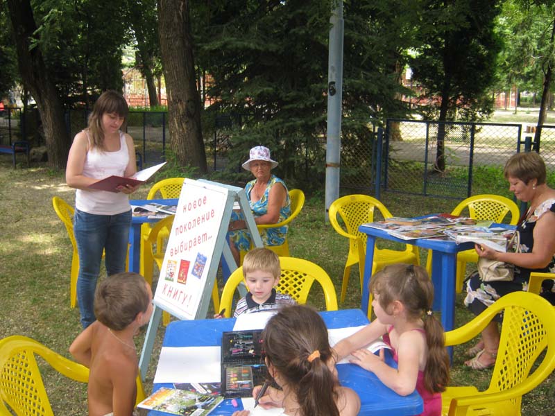 | Центральный парк ст. Отрадной (В рамках цикла мероприятий «Сегодня модно быть здоровым», викторина) 28.07.2015.г. 18 человек. Библиотекари «Отрадненской межпоселенческой центральной библиотеки» подготовили и провели мероприятие, пропагандирующее здоровый образ жизни, среди жителей Отрадненского района. В центральном парке на игровой площадке был организован читальный зал под открытым небом, состоящий из книг и периодики о здоровом образе жизни. Жители района не остались равнодушными. Книги и журналы привлекали внимание практически каждого прохожего. С каждым читателем библиотекари провели викторину. | |