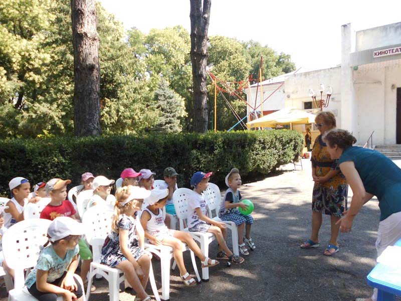 | (Урок здоровья). 29.07.2015г., д/с №8, 25 человека. Урок здоровья библиотекари районной детской библиотеки провели с воспитанниками детского сада. Занятие проходило в Отрадненском парке. На занятии говорили о правилах личной гигиены, о том с чего надо начинать утро (с зарядки), о закаливании, о спорте, о продуктах, которые помогают нашему организму, расти правильно. Ребята прослушали поучительную сказку о микробах. Закрепили занятие викториной о здоровье, провели спортивные игры. И пришли к выводу, что здоровье является главным богатством человека! В конце мероприятия дети посмотрели мультфильм «Королева Зубная щетка» в кинотеатре «Заря». | |