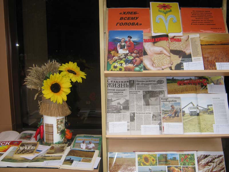 | (информационный марафон). 02.08.2015г. Центральная площадь ст. Отрадной, 63 человека. В ходе районного этапа краевого марафона «Урожай Победы», библиотекарями МБУК «ОМЦБ» были организованы книжно-газетные экспозиции, прославляющие труженников села, наших земляков. Гости и хозяева праздника получили информационные листовки о ходе праздника. Желающие могли проявить свою эрудицию, отвечая на вопросы о сельскохозяйственных культурах нашего края. | |