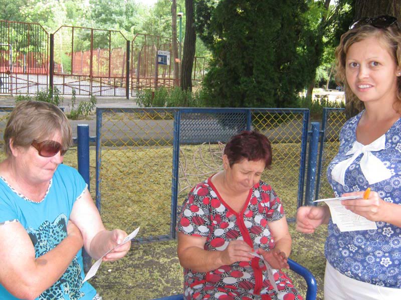 | (тест- опрос). 12.08.2015 г., МБУК «ОМЦБ», Центральный парк ст. Отрадной, 22 человека. Работниками районной библиотеки для жителей станицы Отрадной проведёно мероприятие по пропаганде закона 15-39. Форма мероприятия - тест — опрос о знании «детского закона» Краснодарского края. Каждый участник получил информационные листовки по данной тематике. По результатам опроса несовершеннолетних и взрослого населения выяснилось, что все знакомы с данным законом, выполняют его и считают необходимым для сохранения жизни и здоровья детей. | |