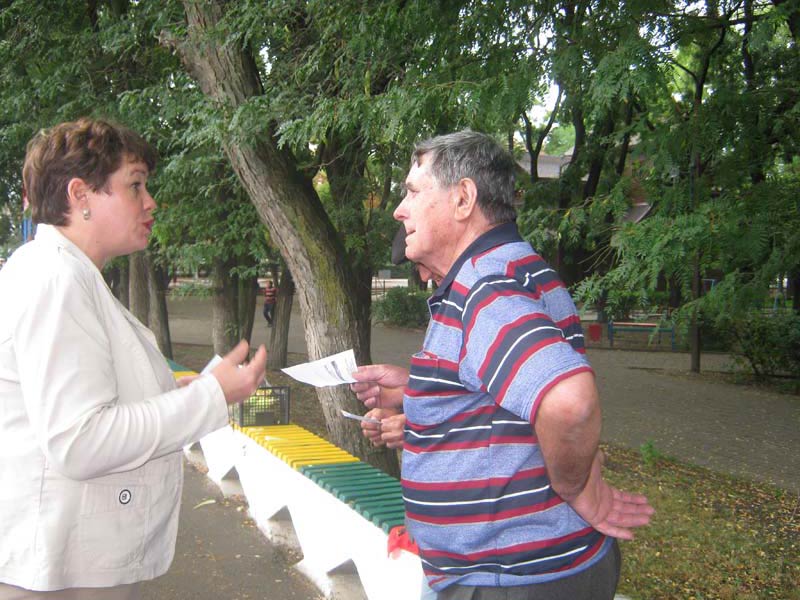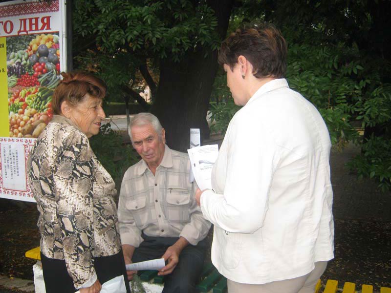 | (информационная акция). 09.09.2015., МБУК «ОМЦБ», Центральный парк, абонемент. 55 человек. Цель: информирование населения о предстоящих выборах губернатора Краснодарского края и депутатов района. В ходе мероприятия работники МБУК «ОМЦБ» рассказывали станичникам о предстоящих выборах и раздавали информационные листовки, содержащие информацию о кандидатах на пост губернатора, а также депутатов района с призывом принять участие в выборах. В мероприятии приняли участие 55 человек. | |