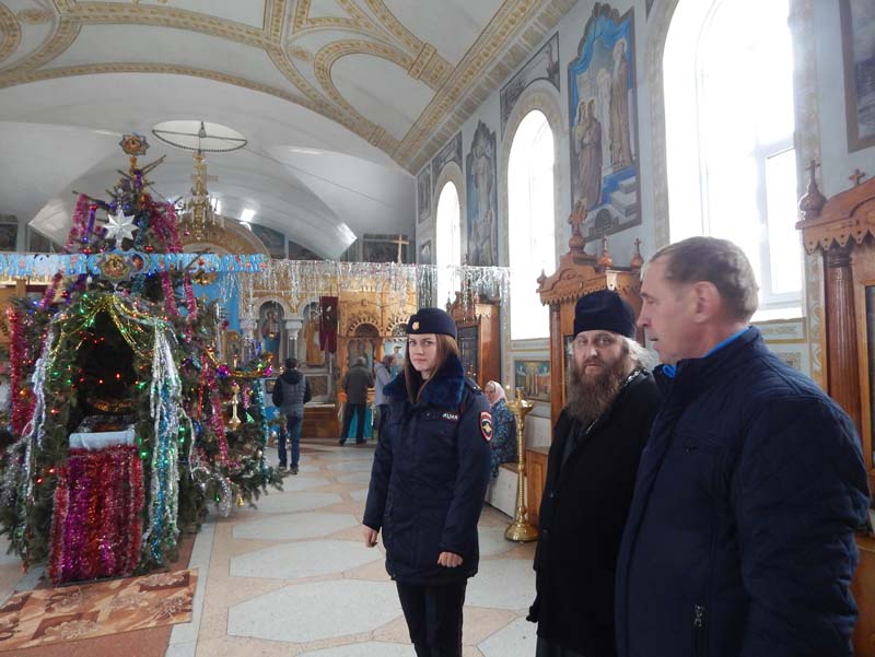 | Общественный совет при отделе МВД России по Отрадненскому району проверил несение службы сотрудников полиции в Рождественские праздники. Председатель Общественного совета при отделе МВД России по Отрадненскому району Василий Сопотов проверил наряды полиции и эффективность их работы в Рождественский сочельник. В частности, общественник посетил храм Рождества Пресвятой Богородицы в станице Отрадной. Настоятель прихода Отец Андрей встретил председателя Общественного совета с рождественскими поздравлениями. Сотрудники полиции предъявили представителю общественности все необходимые документы. В ходе беседы с полицейскими член Общественного совета обратил внимание на их опрятный внешний вид, вежливое отношение к гражданам, добросовестное исполнение служебных обязанностей во время обеспечения охраны общественного порядка и безопасности граждан. Нареканий со стороны представителя общественности не поступило. Работа сотрудников полиции оценена положительно. Т.Н. Чибирикова, специалист направления по связям со СМИ ОМВД России по Отрадненскому району, майор внутренней службы | |