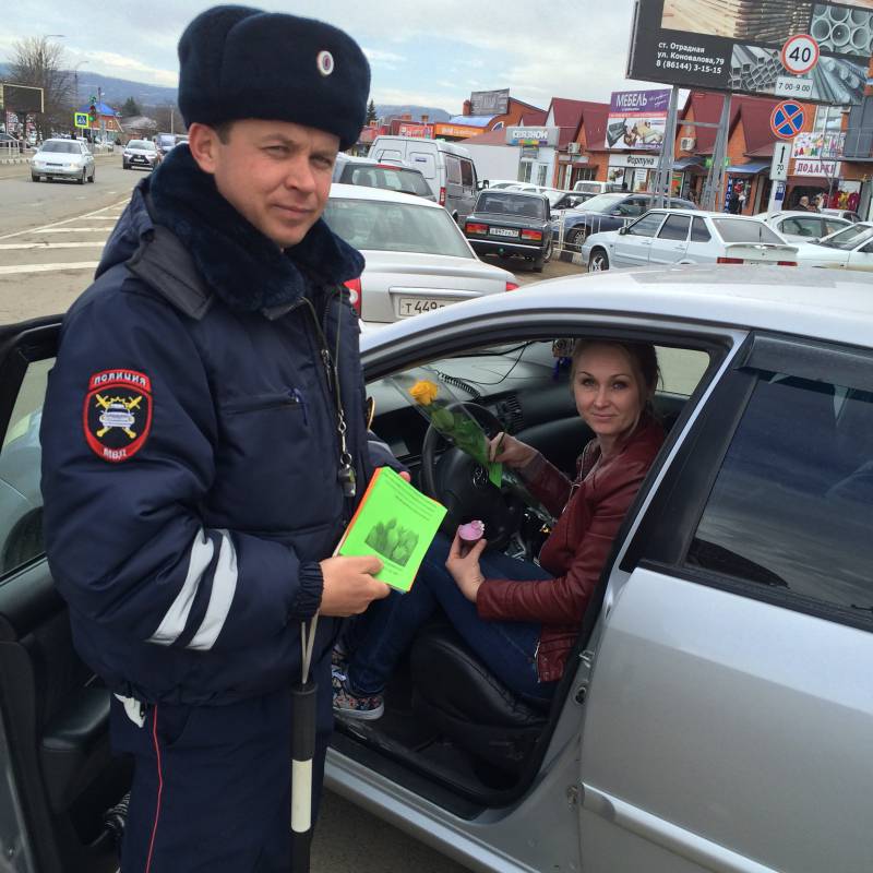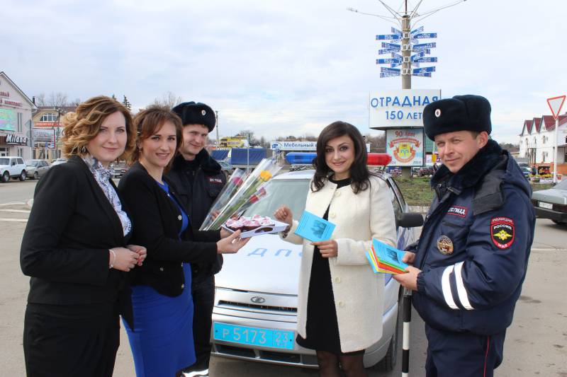 | Сотрудники ОГИБДД Отдела МВД России по Отрадненскому району на кануне празднования Международного женского дня провели профилактическую акцию под названием «Цветочный патруль». В районе центрального рынка в ст. Отрадной нарядом, в составе двух инспекторов ДПС ГИБДД,- старшего лейтенанта полиции Григорьева В.В. и сержанта полиции Грицева Д.Ю. автоледи были вручены яркие праздничные буклеты, в которых, говорится, что существует устоявшийся стереотип об отсутствии водительских талантов у женщин, но сотрудники ГИБДД утверждают, что такое отношение к дамам не справедливо!!! Женщины- ответственные и заботливые! Они против управления транспортным средством в состоянии опьянения и, как никто другой уделяют внимание безопасности собственных детей и любимой семьи на дороге! Профилактика никогда не бывает лишней, убеждены сотрудники ДПС ГИБДД, поэтому с каждой автоледи проведена беседа о недопущении нарушений Правил дорожного движения. По окончании беседы каждой автолюбительнице сотрудники ДПС ГИБДД вручили розу и празднично украшенный шоколадный кекс. Все женщины услышали поздравительные слова в свой адрес и напутствие: «Главное не подарок, главное внимание! Женщины, будьте внимательны за рулем!!!» В.В. Погожев, инспектор по пропаганде ОГИБДД ОМВД России по Отадненскому району | |