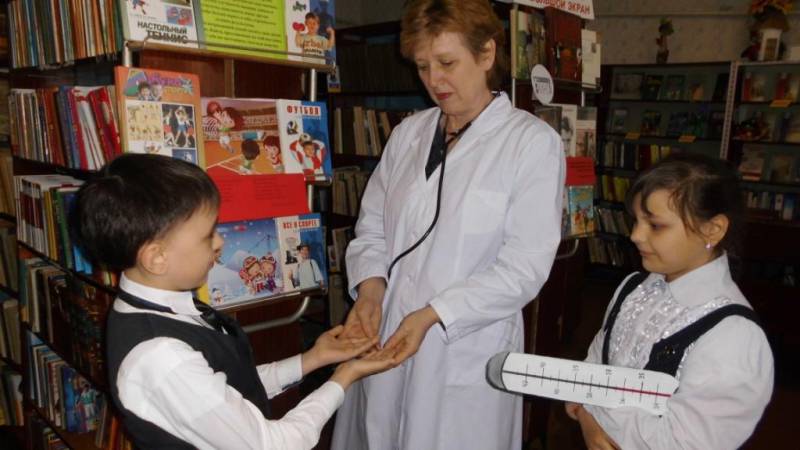 | (Информационная акция) 6.04.2016г., 25 человек. В районной детской библиотеке 6 апреля прошла информационная акция «Мы выбираем здоровье!», которая приурочена к Всемирному дню здоровья. В течение дня читатели библиотеки получали информационные листовки от строгого Доктора Неболейкина с советами по соблюдению режима дня, и правил здоровья, а также ребята познакомились с книгами о том, как стать Неболейкой, правильно чистить зубы и правильно питаться. Вместе с Доктором Неболейкиным ребята делали веселую и полезную зарядку, отгадывали загадки о предметах гигиены, правилах здоровья. | |