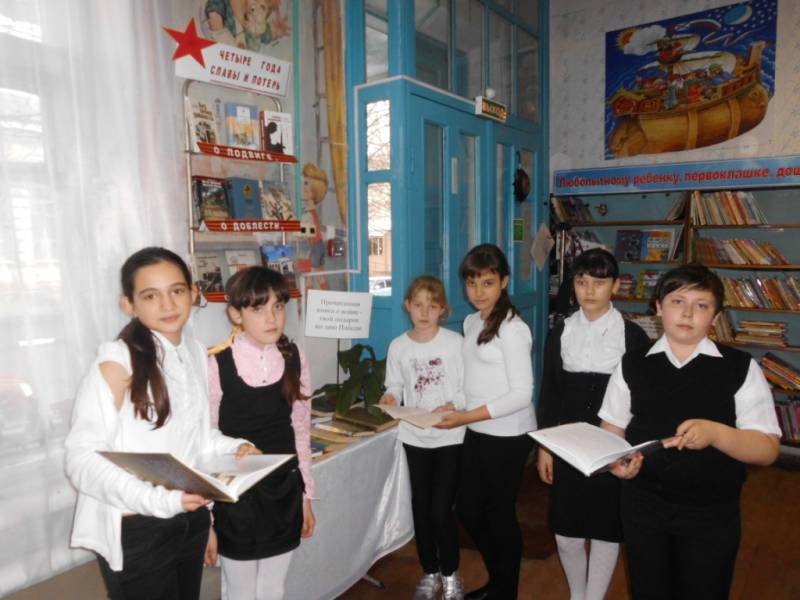 Дата публикации: 4 мая 2016 ![]() ![]() ![]() ![]() Цикл мероприятий. В преддверии празднования Дня Победы в районной детской библиотеке прошел цикл мероприятий, посвященных этому событию. 9 мая – эта дата навечно вошла в историю нашей страны. С чувством глубокой благодарности мы обращаемся в этот день к нашим солдатам, завоевавшим эту Победу. Память о них будет вечной! В детской библиотеке оформлены книжные выставки: «Четыре года славы и потерь», «Поклонимся Великим тем годам». С 23 апреля по 10 мая проводится акция «Прочитанная книга о войне – твой подарок ветерану». На абонементе библиотеки оформлена книжная инсталляция, на которой представлены произведения русских писателей о ВОВ. В акции принимают участие все желающие. 28 апреля для воспитанников детского сада №5 подготовительной группы, библиотекари детской библиотеки провели громкие чтения. После небольшого рассказа о героях Отрадненцах, ребята прослушали стихи, посвящённые погибшим солдатам в суровые военные годы. 29 апреля для воспитанников детского сада №5 проводился мастер класс «Сирень как символ Победы». В начале мероприятия ребятам рассказали, почему сирень стала символом Победы, дети приняли участие в создании макета сирени. 4 мая для учащихся первых классов библиотекари провели час памяти «И подвиг, и память, и боль на века». Во время мероприятия ребята узнали о героических подвигах солдат и офицеров, познакомились с героическими страницами Великой Отечественной войны. Школьники ещё раз вспомнили историю битв за нашу страну и нашу малую родину – Кубань. Час памяти сопровождался яркой, запоминающейся презентацией о военном подвиге советского народа. Всего в мероприятиях приняло участие 80 человек. | ||||||||||||||||||||||||||||||||||||||||||||||||||||||||||||||||||||||