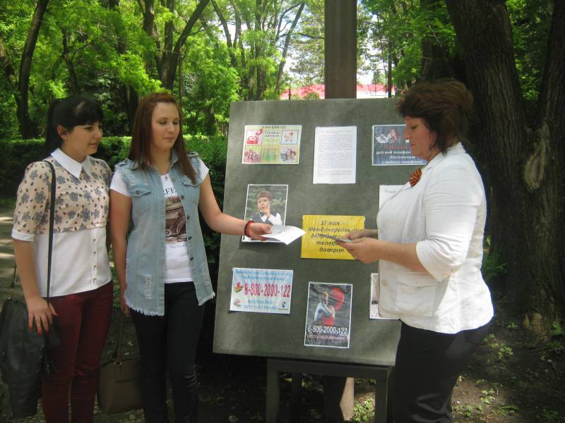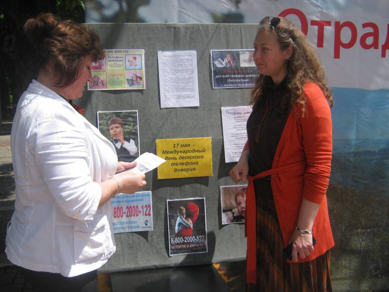 | Отчет о проведенных мероприятиях в рамках Международного дня телефона доверия в районных библиотеках станицы Отрадной. «Отрадненская межпоселенческая центральная» и районная детская библиотеки приняли участие в проведение мероприятий в рамках Международного дня детского телефона доверия. На сайте http://www.otrbiblioteka.ru/ библиотек был размещен баннер «Детский телефон доверия». 17 мая 2016 года работники районной детской библиотеки провели информационную акцию «Ты не один!», призванную ознакомить их с единым общероссийским номером детского телефона доверия. Ребята узнали, что телефон доверия открыт для каждого человека. Не имеет значения возраст, место жительства, состояние здоровья звонившего. Помощь на телефоне доверия всегда анонимна, бесплатна, можно позвонить как с мобильного, так и с домашнего телефона, а самое главное звонить можно в любое время суток. И если вдруг возникнет ситуация, с которой ребенок не сможет самостоятельно разобраться, то ему помогут в этом профессиональные психологи. Работники «ОМЦБ» проводили свои мероприятия не только в стенах библиотеки, но и в центральном парке ст. Отрадной, на площади выпускников. Проводились беседы с родителями – «Как уберечь ребенка от беды». Так же всем посетителям в этот день выдавались информационные листовки о детском телефоне доверия. В библиотеках были оформлены информационные стенды. Всего в рамках акции обслужено 47 человек. | |