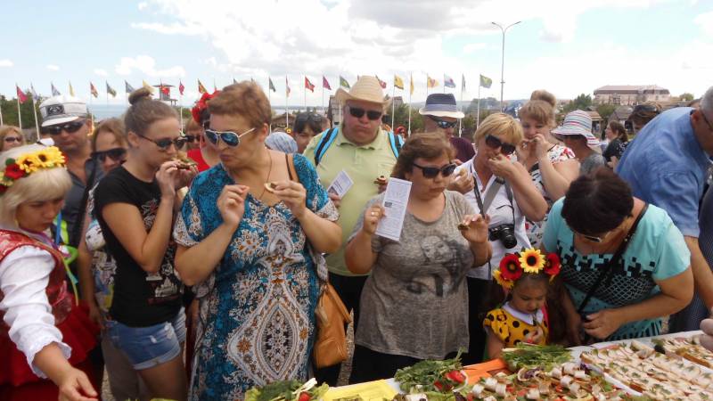 | 11 июня на краевом фестивале в честь Дня России был поставлен рекорд по составлению самого большого бутерброда с салом. На Атаманский бутерброд ушло более 220 килограммов сала, более 400 буханок хлеба, длина бутерброда составила 83 метра 60 сантиметров. Бутерброд - рекордсмен достался всем! Делегация отдела культуры муниципального образования Отрадненский район серьезно подготовилась к творческой презентации своего продукта. В концертной программе фестиваля принял участие коллектив Ирины Камойленко Традиционно участники выставки-ярмарки представляли изделия народных художественных промыслов и ремесел в станичном парке «Разгуляй», работал «Город мастеров», где проводились мастер-классы для детей и взрослых по различным видам декоративно-прикладного искусства и народных художественных промыслов, в нем приняли участие работники районной детской и Отрадненской межпоселенческой центральной библиотек – это Кочоян А.И., Полякова Е.Н., Шевченко Т. А. Выставочный комплекс «Атамань» является не просто музеем под открытым небом, в котором собраны лучшие традиции кубанского казачества, но еще и позволяет всем посетителям стать участниками народных гуляний и праздников. Начальник отдела по работе с детьми ШульгаМ.Н. | |