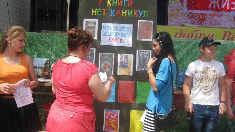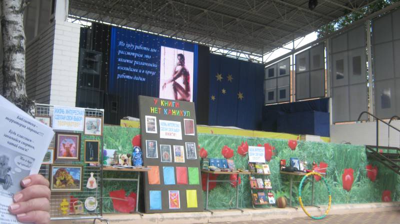 | (Иллюстрированная информационно-рекомендательная акция) 24.06.2016. Центральная площадь.b70 чел. Библиотекари «Отрадненской межпоселенческой центральной библиотеки» совместно с работниками районного Дома культуры подготовили и провели мероприятие, приуроченное к международному Дню борьбы с наркоманией и наркобизнесом, библиотекари организовали тематическую инсталляцию пропагандирующую книгу, спорт, творчество. Каждый участник получил рекомендательные списки литературы, посвященные здоровому образу жизни. Листовки с информацией о пагубном влиянии наркотиков. В мероприятие так же приняли участие: врач нарколог-психиатр, кандидат медицинских наук Беспамятнов В. Е., директор МКУ «Молодежного центра муниципального образования Отрадненский район» Иванова В.В., инспектор ОПДН Плахутина Ж.С. На мероприятие были показаны фильмы (ролики) антинаркотической тематики: «Мама. Спайс – наркотик убийца» (12+) «Среда обитания. Табачный заговор» (12+), «Губительная смесь» (16+). | |