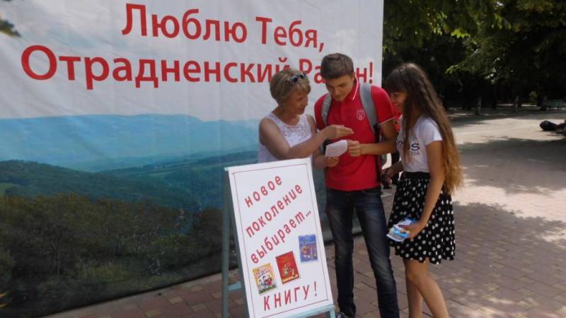 | (Антинаркотическая акция) 24.06.2016г.- 35 чел. 24.06.2016г. библиотекари районной детской библиотеки провели антинаркотическую акцию «Жизнь без вредных привычек» к Международному дню борьбы с наркоманией и наркобизнесом. В течение дня библиотекари раздавали информационные листовки и беседовали с ребятами о профилактике негативных и антиобщественных явлений, призывали молодое поколение Отрадненского района читать книги. | |