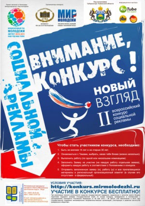 Участником конкурса может стать любой желающий в возрасте от 14 до 30 лет. Для участия в конкурсе необходимо подготовить рекламный материал социального характера. Конкурс проводится по двум номинациям социальный плакат и социальный видеоролик. Предлагаем Вам перечень тем для участия в конкурсе «Новый взгляд» 1.«Мы - россияне» - единство российской нации, обеспечение интересов каждого молодого человека независимо от его национальности; 2. «Здоровый образ жизни» - пропаганда здорового образа жизни и содержательного досуга молодёжи; - борьба с курением, алкоголизмом, наркоманией и другими негативными социальными проявлениями в молодёжной среде; 3. «Моя семья - мое богатство» - популяризация семейных ценностей в молодёжной среде и преемственности поколений; - пропаганда в молодёжной среде создания здоровой семьи, материнства и детства; 4. «Спортивная страна»; 5. «Наша культура» - сохранение и изучение культурного населения России; 6. «Имею право…» - электоральная активность молодёжи, повышения доверия молодёжи к российской избирательной системе; 7. «Дорогой добрых дел»; 8. «Безопасность жизни» - антитеррористическая защищенность и меры по противодействию поступлений террористической направленности; 9. «Берегите природу» - сохранение природы и защита окружающей среды; 10. Специальная тема «Энергоэффективная страна» Победители регионального этапа Конкурса становятся участниками второго этапа - федерального в г. Москве. | |