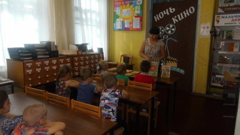 | (Видео час) 27.08.2016, МБДОУ №5, 14 человек. В Отрадненской районной детской библиотеке прошла акция «Ночь кино». Участниками мероприятия стали воспитанники детского сада №5, старшей группы «АБВГДейка». Ребята отправились в путешествие по мультфильмам, снятым по произведениям детских писателей Э. Успенского, С. Михалкова, К. Чуковского, и других. Дети отвечали на вопросы видео-викторины, отгадывали загадки по отрывкам из мультфильмов. В завершении акции «Ночь кино», был показан мультфильм «Крокодил Гена и его друзья», снятый по произведению Э. Успенского. | |