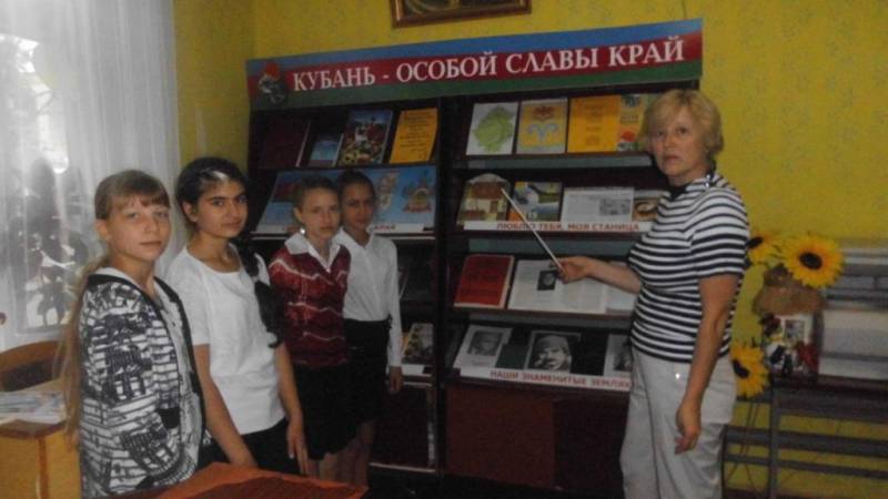 | Экскурсия в историю родного края. 22.09.2016г, РДБ, МБОУСОШ №1, 7 класс, 15 человек. Библиотекари районной детской библиотеки провели мероприятие «Мира не узнаешь, не зная края своего» для учащихся 7 класса МБОУСОШ №1, которое началось у выставки «Кубань - особой славы край». Ребята отправились в путешествие в прошлое, чтобы познакомиться с жизнью наших предков, узнали, как казаки строили свои жилища, что занимало центральное место в хате, какие были семьи: большие или маленькие, какие праздники особо почитались. Поговорили о традиционной казачьей одежде, о регалиях и реликвиях казака. Закончилось мероприятие стихотворением, в котором говорится, что земля, где ты родился самая прекрасная. Родина - вот самый лучший край! | |
