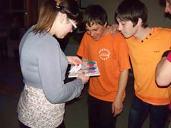 Дата публикации: 15 февраля 2012 ![]() ![]() ![]() ![]() 14 февраля в Отрадненском Доме культуры прошло зажигательно. Молодежное шоу – вечеринка «У любви свои законы», посвященное Дню святого Валентина. С 19-00 ди-джей Руслан Вахаев заводил молодежь клубными хитами и сам вместе со всеми пускался в пляс, заражая людей своей искрометной энергией. В 20-00 началось самое интересное. В диско зале загорелся легкий свет и две симпатичные девчонки – зажигалки, ведущие Анна Санькова (студентка КубГУ ) и Оксана Карзанова (художественный руководитель Отрадненского СДК) начали праздничное шоу, где главными персонажами стала сама молодежь. Активные ведущие выбрали среди молодежи добровольцев – юношей и девушек, и с помощью половинок сердец с именами знаменитых влюбленных выбрали 6 пар: Руслан и Людмила, Ромэо и Джульета, Юнона и Авось, Отелло и Дездемона, Наполеон и Джозефина, Адам и Ева. С образовавшимися парами было проведено ряд увлекательных конкурсов, где победителям вручались фишки в форме сердечек с призовыми очками. Все присутствующие с восторгом наблюдали за соревнующимися парами, подбадривали дружно и шумно, болели, сопереживали. Конкурсы были разнообразными. Молодые пары испытывали на выносливость, сообразительность, ловкость и на прочность чувств. Между конкурсами были танцевальные «переменки». Когда в финале подбили итоги по количеству призовых очков, выявили пару победительницу. Эта пара – Руслан и Людмила, а в реальной жизни Анна Свежинцина (студенка 2 курса КубГУ) и Максим Мальцев МБОУ СОШ № 59. Победителям было присвоено звание лучшей пары года «Валентин и Валентина», а так же были вручен приз – бесплатные билеты на молодежные дискотеки Отрадненского СДК сроком на 1 месяц. Весь оставшийся вечер был посвящен победителям. Молодежь веселилась и танцевала. Ребята «Экстрим Крю» увлекающиеся брейк-дансам подарили победителям свой динамичный танец. Но все хорошее когда-нибудь заканчивается, закончился и этот праздничный вечер. Молодые с неохотой покидали, диско-зал и еще некоторое время толпились на ступеньках ДК , делясь приятными впечатлениями. | ||||||||||||||||||||||||||||||||||||||||||||||||||||||||||||||||||||||