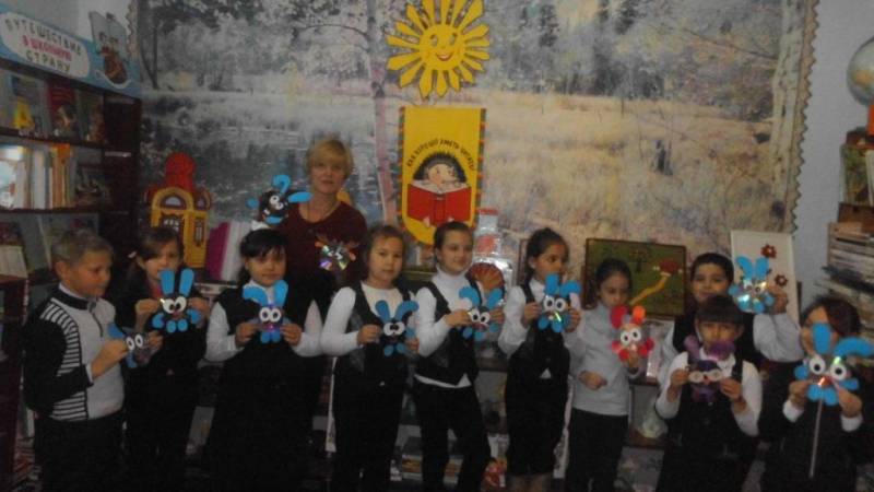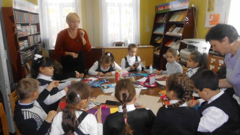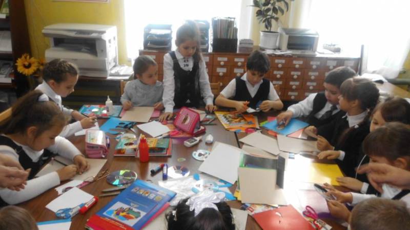 | (Мастер-класс) 26.10.16.г., РДБ, МБОУСОШ №1, 2 класс,12 человек. Библиотекари районной детской библиотеки провели мастер - класс «Творческая мастерская» для учащихся второго класса МБОУСОШ №1. Совместно с библиотекарем ребята сделали героев мультфильмов в технике «коллажа» из дисков и цветного картона. Мероприятие дало возможность раскрыть творческие способности детей, терпение, аккуратность и стремление к эксперименту. | |
