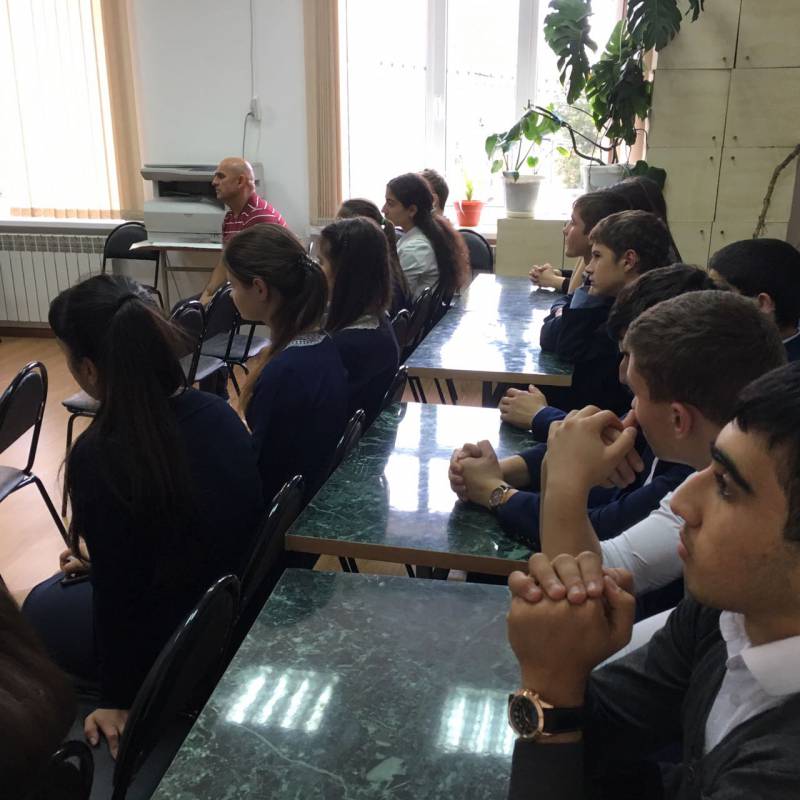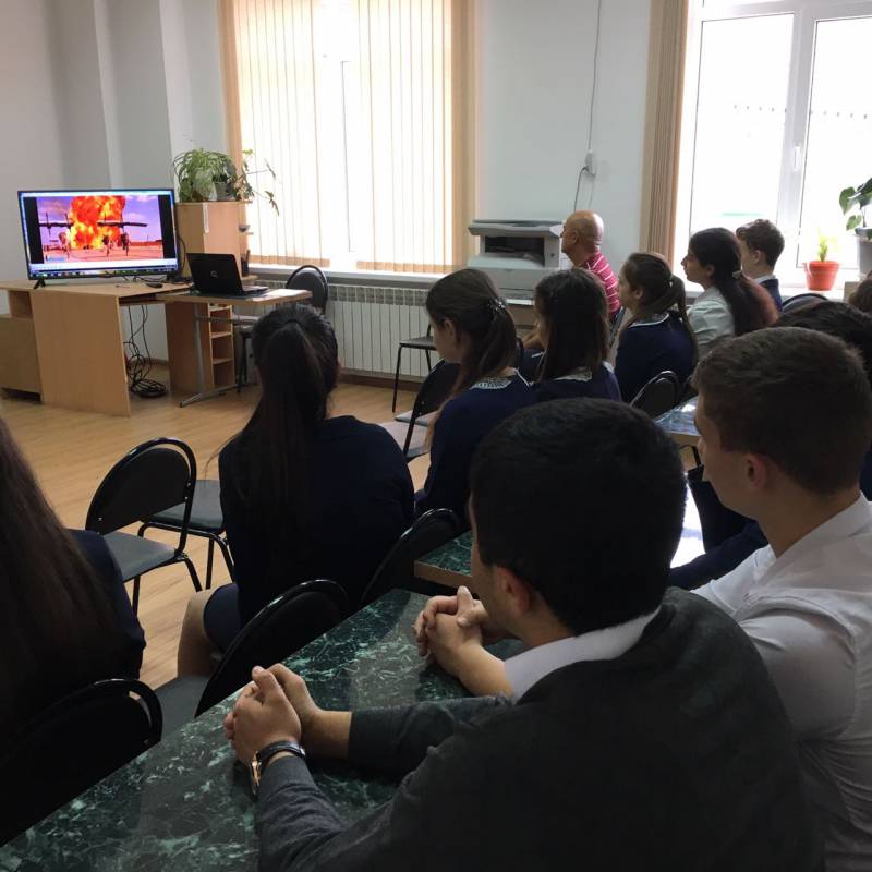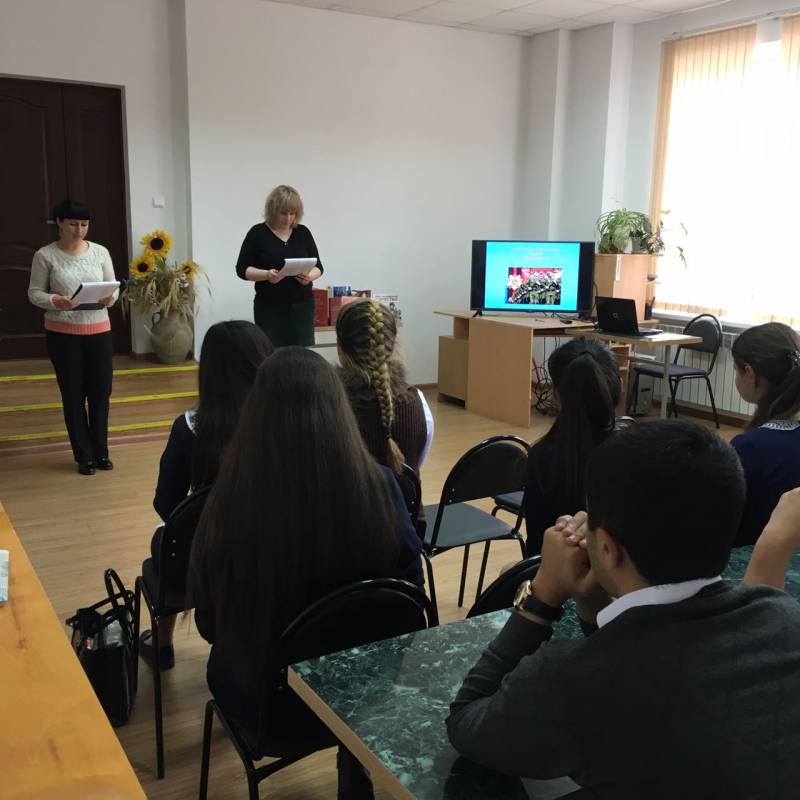 | 27.10.16., МБУК «ОМЦБ», МБОУСОШ №59, 20 человек. Урок патриотического воспитания «Имею честь служить тебе, Россия» посетили учащиеся 9 класса МБОУСОШ №59. Мероприятие посвятили воинам - интернационалистам, живым и не вернувшимся из «горячих точек», о тех кто навсегда остался в горах Афганистана и Северного Кавказа. Мероприятие не оставило равнодушным никого их присутствующих. Ребята с интересом слушали об отрадненцах, воевавших в «горячих точках», особенно о Геннадии Жаркове, который учился в их школе, служил в Грозном, а после и в Афганистане, где геройски погиб, и теперь на здании МБОУСОШ №59 установлена мемориальная доска с его именем. Насколько оправдано участие Российской армии в локальных войнах, не нам судить, но можно с уверенностью сказать, что в сердцах юношей и девушек навсегда останется светлая память и гордость за солдат и офицеров с честью выполнивших свой гражданский и интернациональный долг, показавших всему миру пример бескорыстного служения своему Отечеству. | |