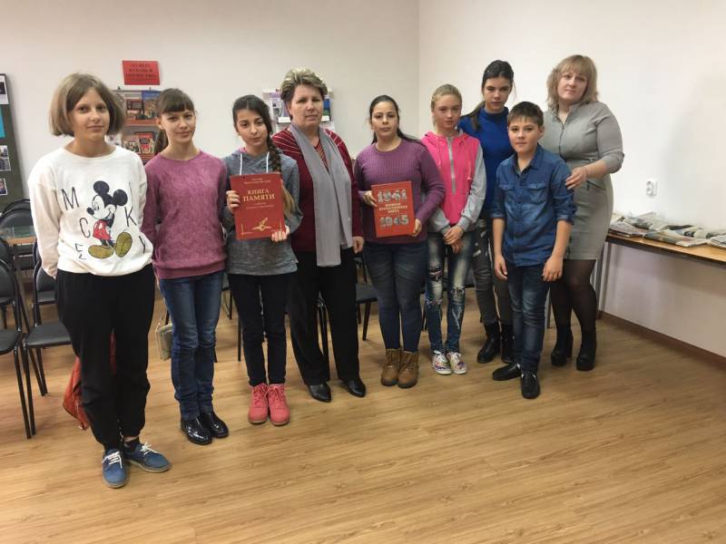 | (Урок мужества) 01.11.16. МАУСОШ № 9. 7 класс,7 человек. Гости «Отрадненской межпоселенческой центральной библиотеки» порассуждали на тему, почему мероприятие названо «Родники мужества»? Ребята правильно догадались, что речь пойдет о детях, которые проявляли мужество. Сегодня им предстояло познакомиться с пионерами-героями и детьми, которые сражались в годы Великой Отечественной войны и отдали свои юные жизни в борьбе с фашизмом. Погибли и шагнули в бессмертие тысячи мальчишек и девчонок во имя мира на земле. Где-то в беспредельной вышине давно утихли звуки детских голосов, но на земле остались их имена. Они тихой музыкой минувших дней звучат в сердцах тех, кто помнит… Нельзя забывать эти имена: Александр Матросов, Зоя Космодемьянская, Олег Кошевой, Зина Портнова, Марат Казей, Володя Дубинин, Леонид Голиков, Валентин Котик, Любовь Шевцова, Юта Бондаровская и ещё тысячи и тысячи имён. И каждое из них – напоминание и наказ для всех ныне живущих!По окончании мероприятия дети познакомились с книжной выставкой по данной тематике. | |