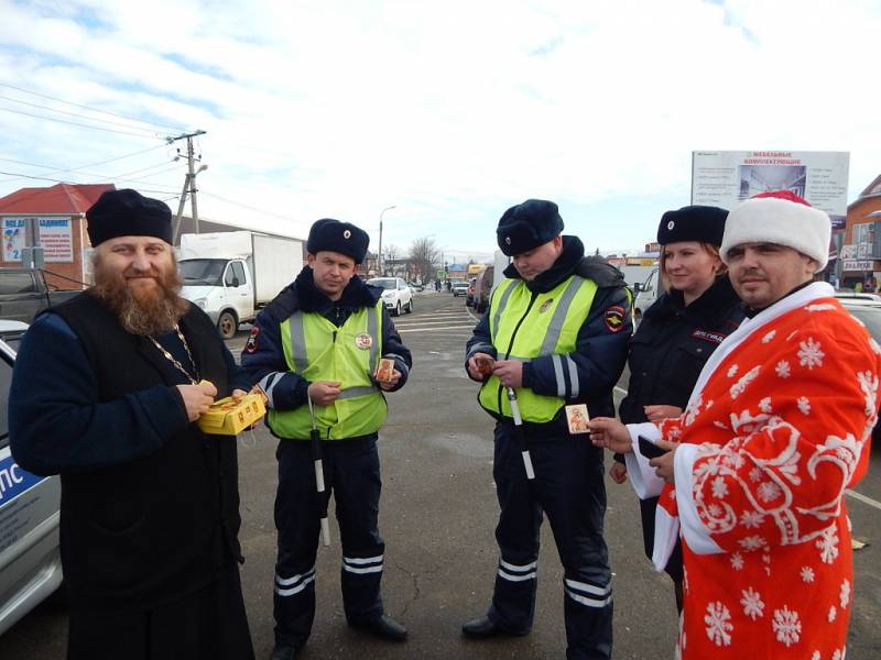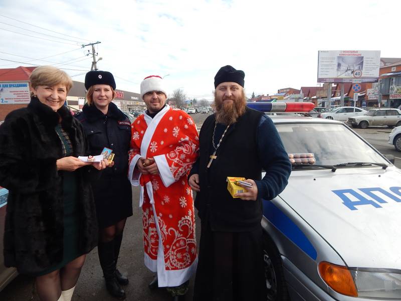| В Отрадненском районе в рамках акции «Полицейский Дед Мороз» сотрудники ГИБДД и общественный совет поздравили водителей с Новым годом и Рождеством Христовым! В Отрадненском районе в рамках Всероссийской благотворительной акции «Полицейский Дед Мороз» сотрудники ГИБДД совместно и членом Общественного совета настоятелем храма Рождества Пресвятой Богородицы отцом Андреем и Дедом Морозом поздравили автолюбителей с Новым годом и Рождеством Христовым. Сотрудники ГИБДД вручили памятки «Внимание, дети!» дарили автолюбителям и пассажирам новогодние игрушки и пирожные, а отец Андрей подарил иконы святых. Полицейские пожелали водителям, соблюдать скоростной режим и быть внимательными к детям - самым незащищенным участникам дорожного движения! Автолюбители выразили благодарность полицейским за внимание и приятный сюрприз. В завершении мероприятия отец Андрей поздравил полицейских с Новым годом и подарил полицейским иконы и шоколадки. Т.Н. Чибирикова, специалист направления по связям со СМИ ОМВД России по Орадненскому району | |