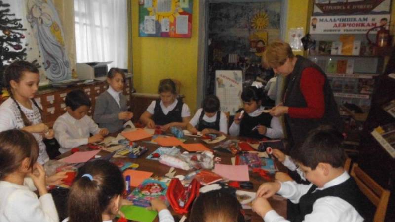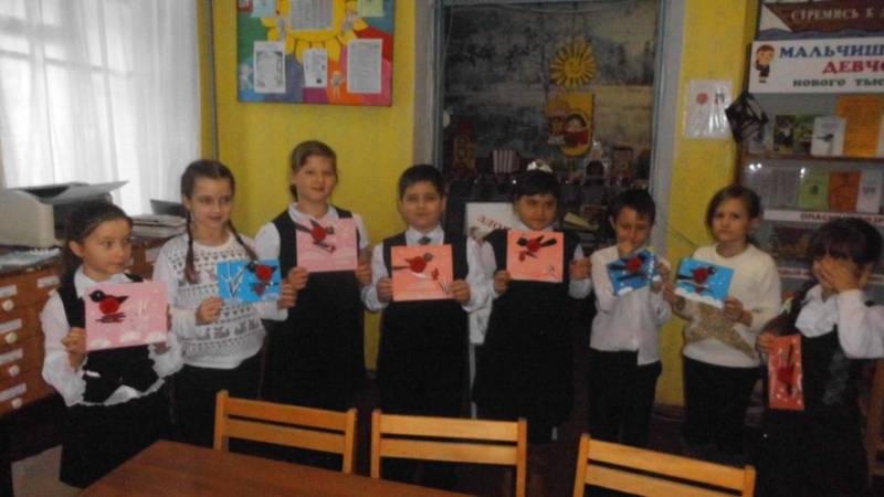 | (Урок творчества) 12.01.17г., РДБ, МБОУСОШ №1, 2 класс, 11 человек. 12 января, в районной детской библиотеке состоялось очередное заседание клуба «Мастерская чудес», на котором ребята совместно с библиотекарем сделали открытку в технике «коллаж» из картона, цветной бумаги, салфеток. Цель этого мероприятия - дать уникальную возможность раскрыть творческие способности ребенка и стремление к эксперименту. Ребята сначала определили свой художественный замысел, а затем воплотили его в своей открытке, при этом используя свои творческие способности. Работа была выполнена аккуратно, оригинально. | |