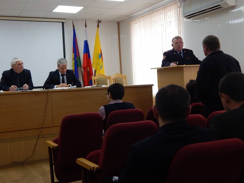 | Отчет начальника перед Советом депутатов МО «Отрадненский район» о деятельности Отдела МВД за 2016 год. 26 января 2017 года начальник ОМВД России по Отрадненскому району полковник полиции Виктор Аркадьевич Рассохин выступил перед Советом депутатов муниципального образования Отрадненский район о деятельности Отдела МВД за 2016 год. Отметил, что оценивая итоги работы Отдела за 2016 год, в целом удалось удержать криминогенную ситуацию под контролем и решать оперативно-служебные задачи. В отчетном периоде личным составом Отдела осуществлен комплекс мероприятий, направленных на обеспечение общественного порядка и защиту законных интересов граждан, профилактику правонарушений, борьбу с преступностью и коррупцией, противодействие терроризму и экстремизму, незаконному обороту оружия и боеприпасов, наркотических средств. Не допущено роста преступлений, связанных с кражами чужого имущества по итогам отчетного периода зарегистрировано 230 краж, в том числе 43 квартирных кражи, отмечено снижение краж сотовых телефонов, транспортных средств, в том числе автомобилей, остаток нераскрытых преступлений, связанных с кражами чужого имущества уменьшился на 24%. Положительные результаты достигнуты по блоку профилактики преступлений, так на 21% уменьшилось число преступлений, совершенных на бытовой почве, на 12% уменьшилось количество преступлений, совершенных в составе группы лиц. Увеличилось количество выявленных преступлений по линии незаконного оборота наркотиков 49, количество выявленных преступлений, связанных с незаконным оборотом оружия составило 9. Начальник ОМВД отметил, что, несмотря на достигнутые положительные результаты по ряду направлений, имеются и негативные тенденции, это рост зарегистрированных мошенничеств, в том числе совершенных с использованием средств мобильной связи. В отчетном периоде всего зарегистрировано 63 преступлений, связанных с мошенничествами, процент раскрытия составил 40,32%. На территории Отрадненского района в общественных местах совершено 155 преступлений. Из общего числа преступлений, совершенных в общественных местах 112 совершено на улицах, площадях, парках. Проблема преступности в общественных местах района имеет ярко выраженный социальный характер. Подавляющее большинство преступлений в общественных местах совершены лицами без постоянного источника дохода. В целях устранения негативных тенденций в данном направлении оперативно-служебной деятельности в Отделе МВД России по Отрадненскому району продолжено использование сил общественности и казачества совместно с подразделениями Отдела в обеспечении общественного порядка и безопасности граждан на улицах и других общественных местах. В течение прошедшего года организовывалось проведение оперативно-профилактических мероприятий «Правопорядок», направленных на предупреждение преступлений в общественных местах, в том числе на улицах Отрадненского района, наиболее подверженными преступлениями данного характера. На территории района в 2016 году проведено 45 мероприятий с массовым пребыванием граждан, Общее количество участников составило 108670 человек. Общее количество сотрудников Отдела задействованных на охрану общественного порядка составило 1209, в том числе было привлечен 391 представитель казачества. Необходимо отметить с положи