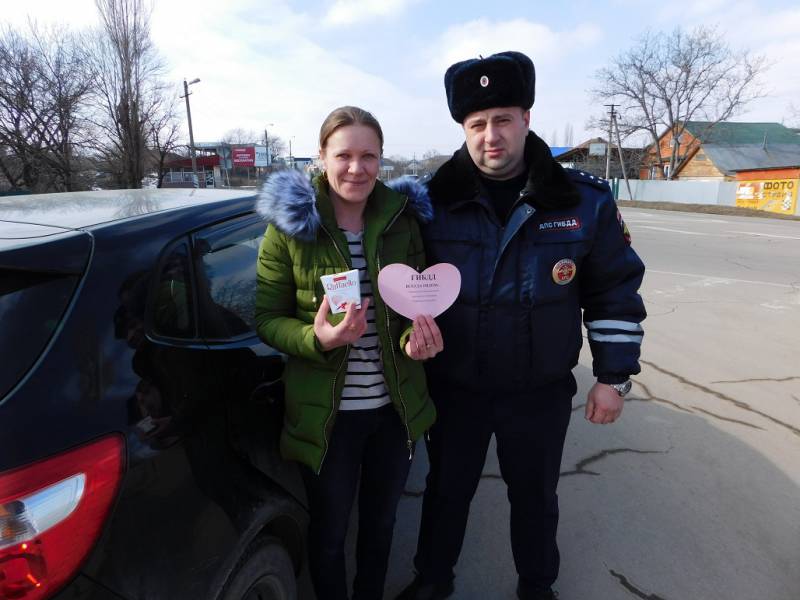 | В районе в День всех влюбленных сотрудники ОГИБДД провели профилактическую акцию «Соблюдай Правила дорожного движения». Весенние дни вместе с весенним настроением приближаются медленно, но уверенно. В День всех влюбленных, который так популярен среди молодежи, сотрудники ОГИБДД решили привлечь внимание жителей района к всегда актуальной теме «дорожной безопасности» не совсем обычным способом. Всем известна истина, лучше предотвратить беду, чем потом разбираться с печальными последствиями. Поэтому с целью профилактики ДТП инспекторы сделали сюрприз женщинам Отрадненского района, подготовив сладкие подарки и «валентинки» с напоминанием об обязательном соблюдении Правил дорожного движения не только в будни, но и в праздничные дни, а командир отдельного взвода ДПС ГИБДД по Отрадненскому району Р.П. Теплов лично вручал подарки девушкам района. Нужно заметить, что акция прошла на высокой ноте позитива, подарив на целый день праздничное настроение, как жителям района, так и хранителям порядка и безопасности на дорогах. А.С. Иваненко, инспектор ИАЗ ОГИБДД ОМВД России по Отрадненскому району, лейтенант полиции | |