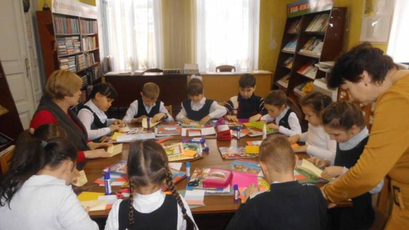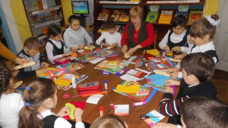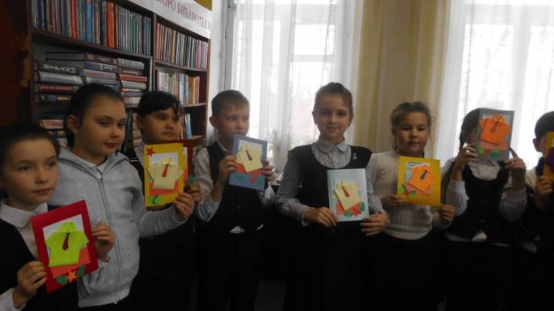 | (Урок творчества) 15.02.17.г, 2 класс, школа №1, 15 человек. 15 февраля в районной детской библиотеке состоялось очередное заседание клуба «Мастерская чудес». Члены клуба совместно с библиотекарями научились делать открытку в технике «оригами» из цветного картона и цветной бумаги. Так как заседание проходило в преддверии 23 февраля все поделки были изготовлены для любых пап и дедушек. Целью данного мероприятия являлось развитие художественных навыков, творческих способностей ребенка, знакомство детей с техникой «оригами». Хотелось бы отметить, что все работы были выполнены аккуратно и оригинально. | |