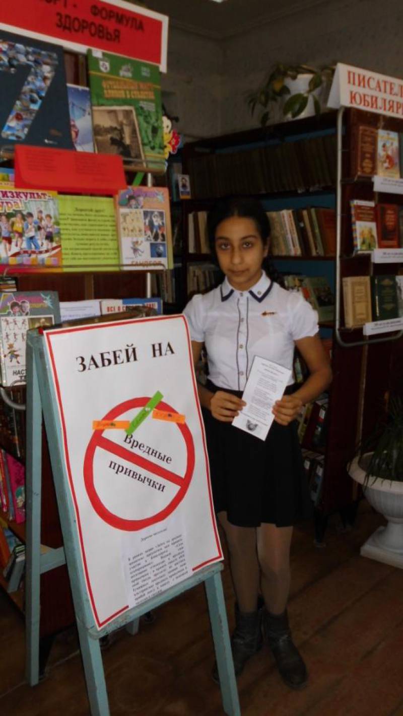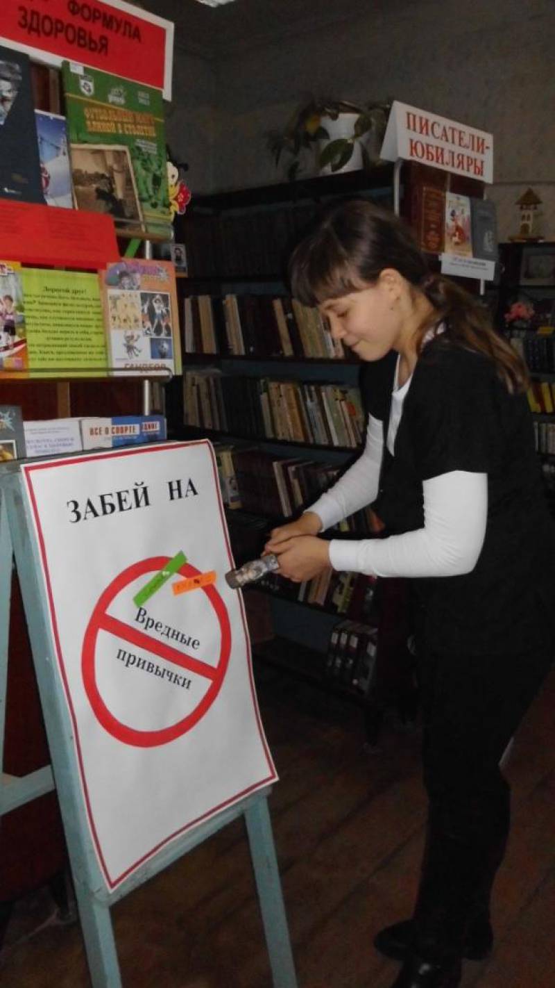 | Отчет о проведенных мероприятиях в районных библиотеках МО Отрадненский район, посвященных 1 марта - Международному дню борьбы с наркоманией и наркобизнесом 1 марта провозглашен Международным днем борьбы с наркоманией и наркобизнесом в 1987 г. Генеральной Ассамблеей ООН. В связи с этим в районных библиотеках состоялись информационная акция и день информации, которые продлились в течение всего дня: В районной детской библиотеке прошел день информации «Остановись! Сделай выбор!». Вначале прошла акция «Забей на вредные привычки!». Цель акции: привлечь внимания подростков к проблеме и призвать их к активному, здоровому образу жизни. В рамках акции проведён блиц-опрос «Своя альтернатива». Всем желающим была предоставлена возможность выразить своё негативное отношение к наркотикам, в прямом смысле вбить свой гвоздь протеста: на цветных бумажных ленточках участники акции записывали свою альтернативу вредным привычкам и прибивали ленту к макету с помощью молотка и гвоздей. В акции приняли участие читатели библиотеки. Все читатели библиотеки получили информационные листовки по теме. Также библиотекари провели урок здоровья «Путешествие в страну Здоровья» для учащихся пятого класса. Во время игры-путешествия ребятам расказали, что нужно осторожно обращаться с незнакомыми веществами, осторожно вести себя с незнакомыми людьми. Ребятам рассказали об опасности употребления таких одурманивающих веществ, как алкоголь, табак, наркотики. И призвали заботиться о своем здоровье – высшей человеческой ценности, которое обеспечивает полноценную и счастливую жизнь. В «Отрадненской межпоселенческой центральной библиотеке» прошла информационная акция «Жизнь даётся один раз», целью которой было информирование о пагубных последствиях употребления наркотиков. Библиотекари у книжной выставки проводили беседы рекомендуя книги по ЗОЖ, каждый читатель получил памятку. Так же сделали акцент о необходимости понимания реальной угрозы жизни, и здоровью, которые несут наркотики. Всего библиотекари районных библиотек обслужили в этот день 70 человек. | |