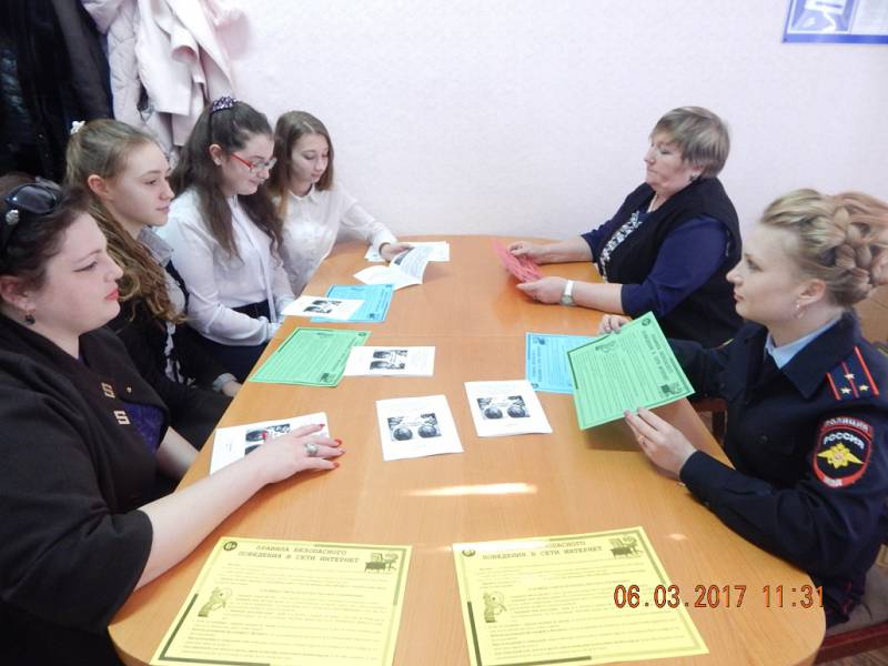 Дата публикации: 6 марта 2017 ![]() ![]() В рамках акции «Безопасный Онлайн» полицейские провели родительские собрания в школах и встретились со школьниками. В рамках проводимой акции «Безопасный Онлайн» сотрудники отделения по делам несовершеннолетних Отдела МВД России по Отрадненскому району провели в районных школах № 1, 9 и 16 профилактические встречи со школьниками и их родителями. На основе специально разработанной сотрудниками ГУ МВД России по Краснодарскому краю памятки «Безопасный Онлайн детям и родителям» полицейские рассказали собравшимся об основных правила безопасности в сети. Инспектор ОПДН ст.лейтенант полиции Ж. В. Плахутина напомнила ребятам о необходимости быть бдительными при общении с малознакомыми людьми в Интернете. Родителям стражи правопорядка порекомендовали стать своему ребенку виртуальным другом, чтобы иметь возможность контролировать его поведение в сети Интернет. Сотрудники отделения по делам несовершеннолетних, представители Общественного совета, комитета по делам молодежи, учащиеся школы №1 ст. Отрадной провели заседание круглого стола. В ходе, которого обсудили способы защиты от наиболее распространенных видов правонарушений в средствах массовой коммуникации» с использованием наглядной агитации. Специалист по делам молодежи Н. Н. Володько обратила внимание собравшихся критически подходить к заманчивым предложениям с сети Интернет, чтобы не попасть на яркие выкрики экстремистов и предложила заниматься спортом и интересным делом. Полицейские раздали в школе профилактические листовки. Т.Н. Чибирикова, специалист направления по связям со СМИ ОМВД России по Отрадненскому району | ||||||||||||||||||||||||||||||||||||||||||||||||||||||||||||||||||||||