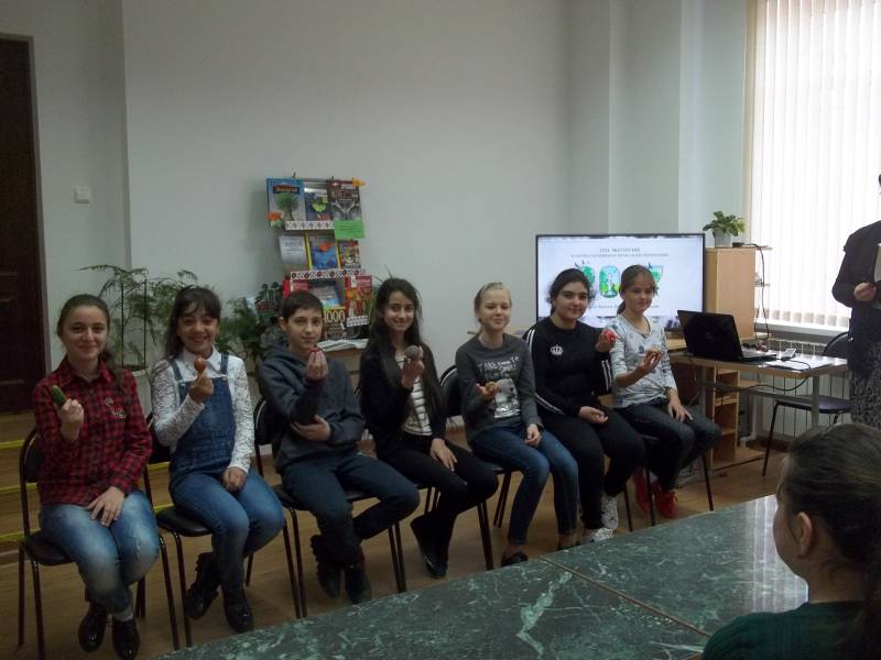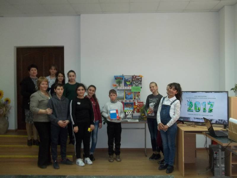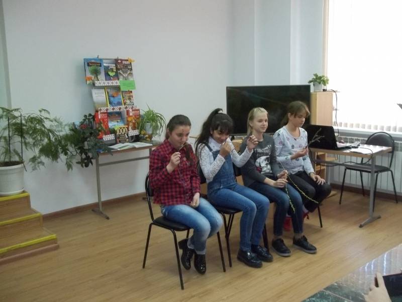 | Конкурсная программа. МБОУСОШ № 59 15 чел. 28 марта в рамках Недели детской и юношеской книги в «Отрадненской межпоселенческой центральной библиотеке» состоялось мероприятие, приуроченное к Году экологии и особо охраняемых природных территорий. Началом мероприятия стал просмотр короткометражного фильма «Улыбка природы». Фильм заставил ребят задуматься о том, что каждый из нас ответственен за сохранность нашего общего дома – планеты Земля, и каждый может внести свою лепту в процветание окружающей природы. Затем Следующим блоком мероприятия стала конкурсно-игровая программа, ребята с увлечением отгадывали загадки и ребусы, с помощью пантомимы изображали животных, по веточкам растений угадывали, какому дереву они принадлежат. Победителям вручили памятные призы. | |
